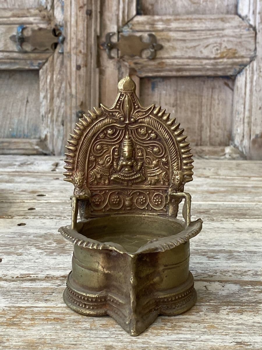 Antique Oil Lamp - Depicting Laxshmi, the Goddess of Wealth and Elephants