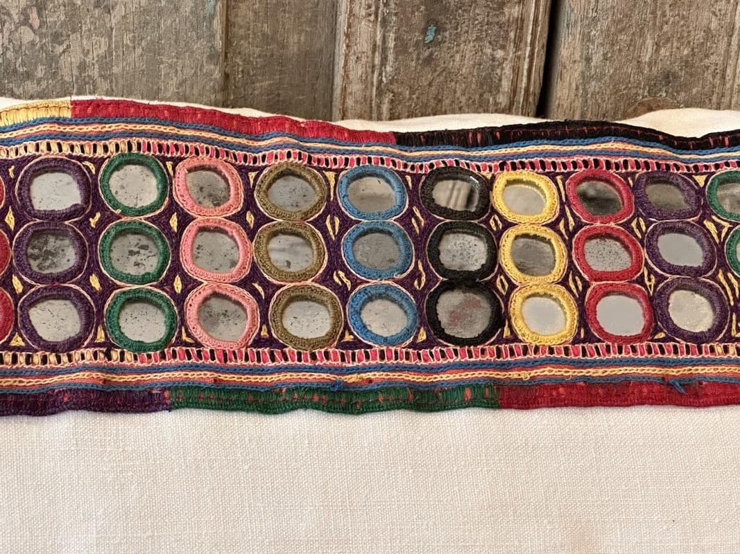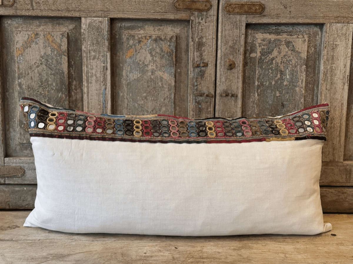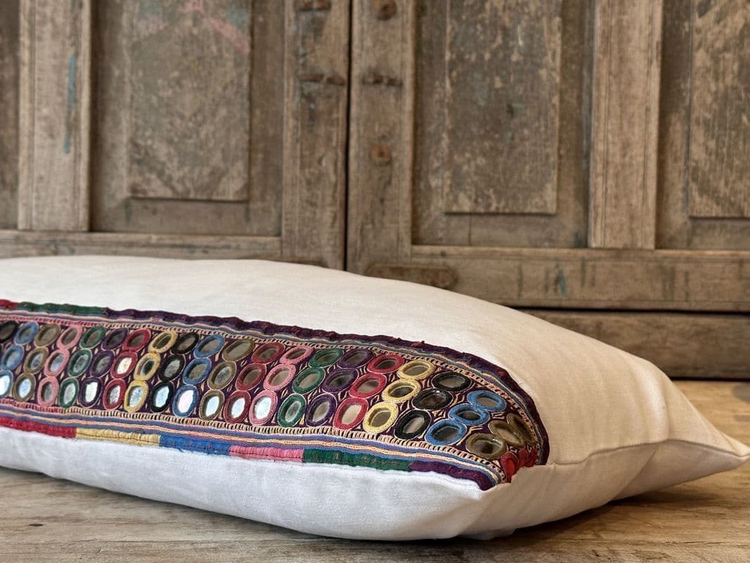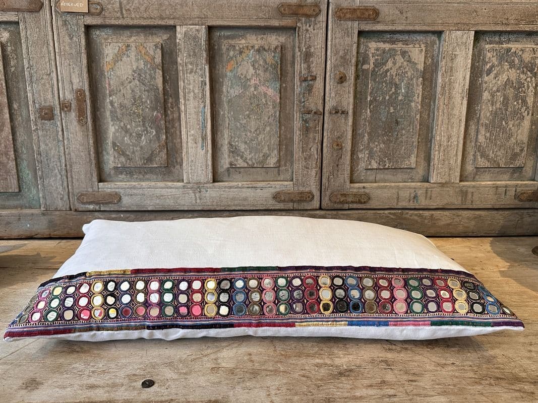 Antique Textile Cushion with Linen and Mirrorwork