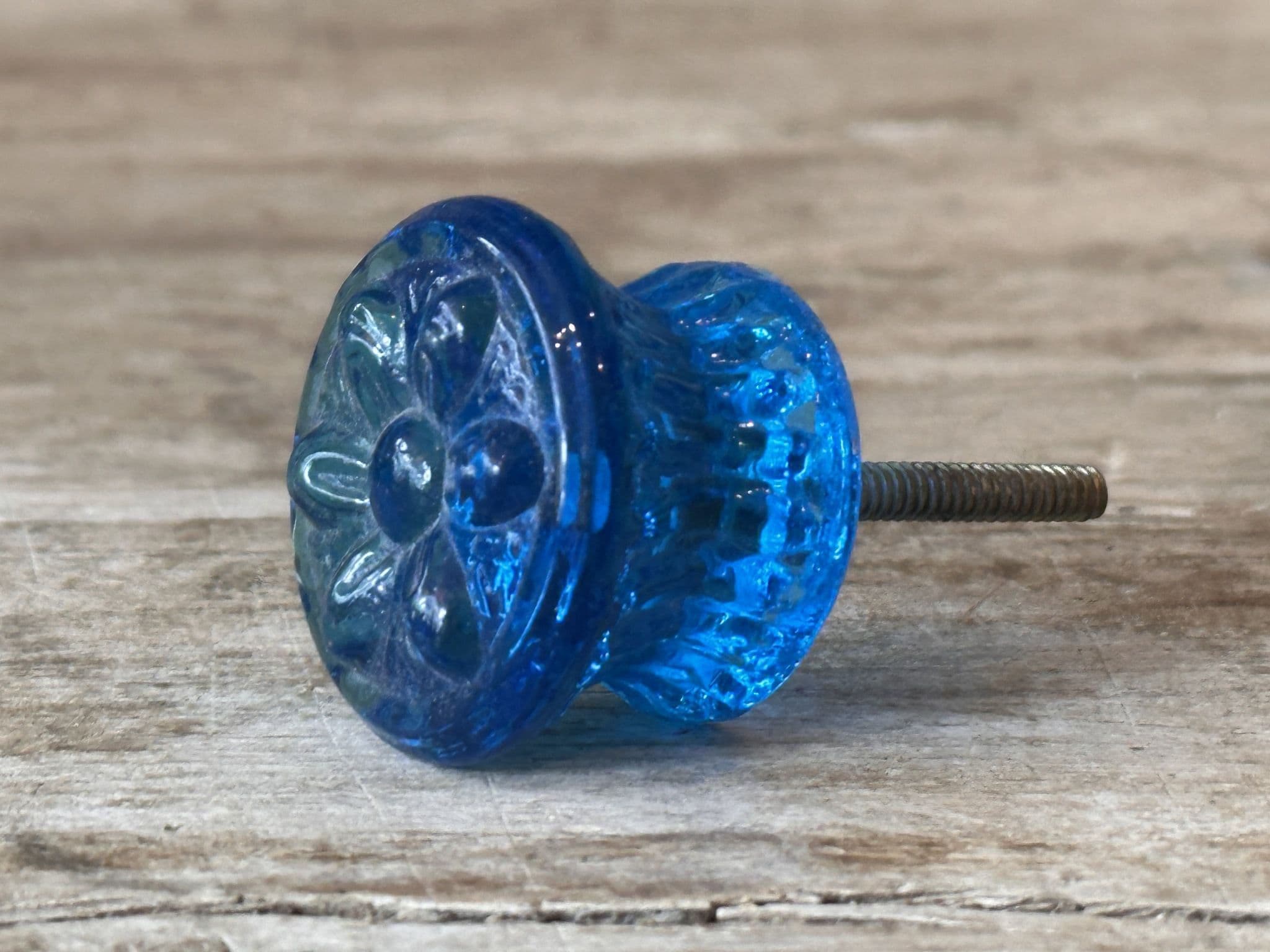 Dark Aqua Embossed Glass Door Knob