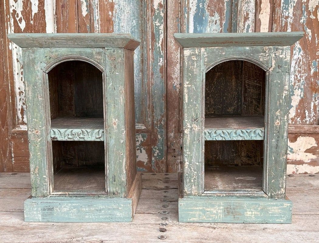 Pair of Antique Bedside Tables With Faded Paint Tones